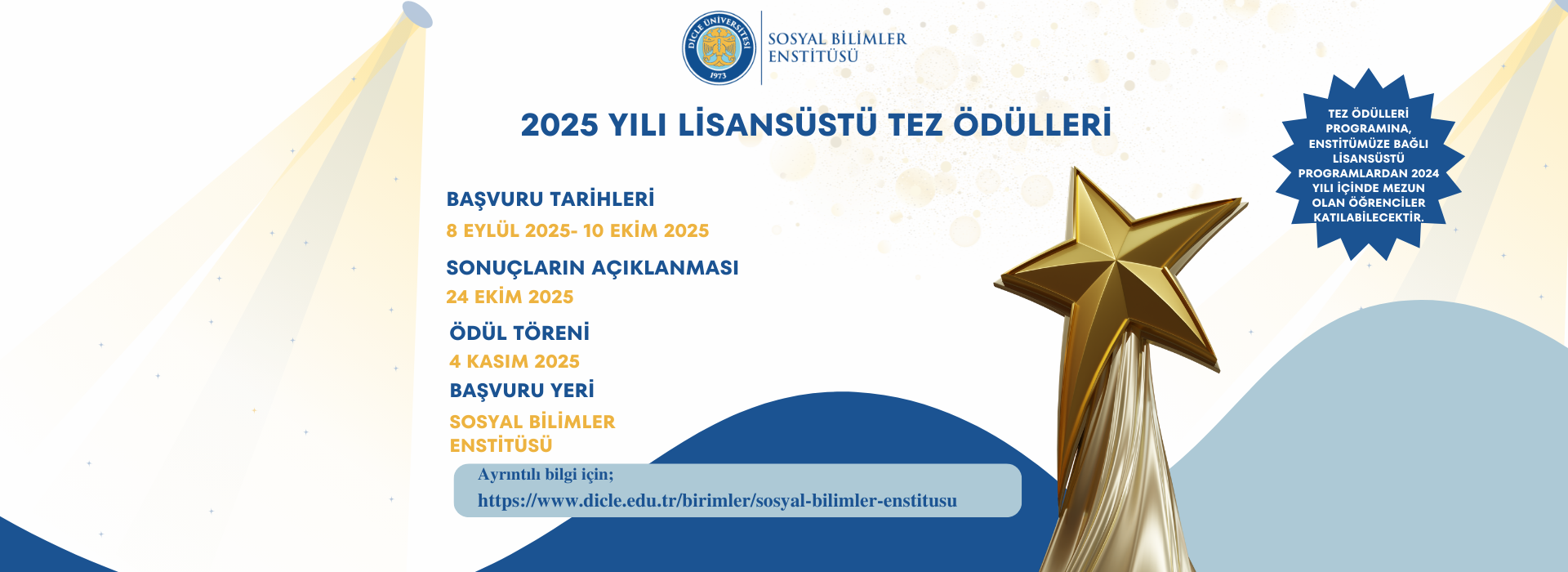 • SOSYAL BİLİMLER ENSTİTÜSÜ 2025 YILI LİSANSÜSTÜ TEZ ÖDÜLLERİ BAŞVURUSU SÜRECİ BAŞLIYOR