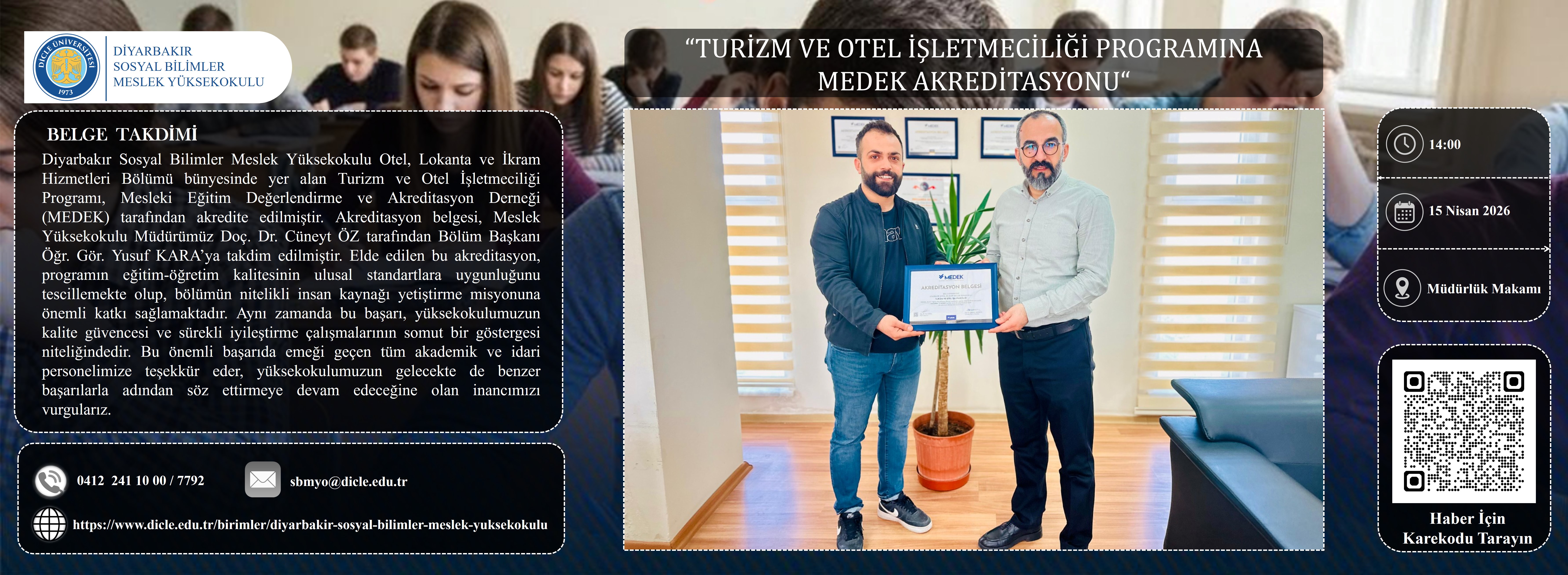 • TURİZM VE OTEL İŞLETMECİLİĞİ PROGRAMINA MEDEK AKREDİTASYONU