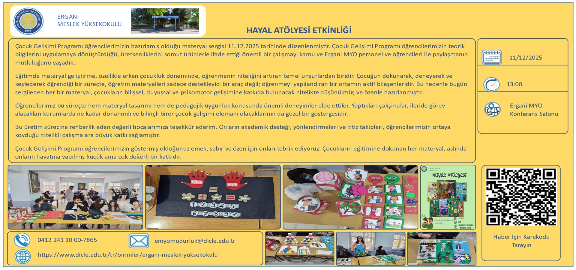 • Çocuk Bakımı ve Gençlik Hizmetleri Bölümü Öğrencilerinin düzenlemiş olduğu, "Bu Yıl Neler Yaptık" sergisi düzenlendi