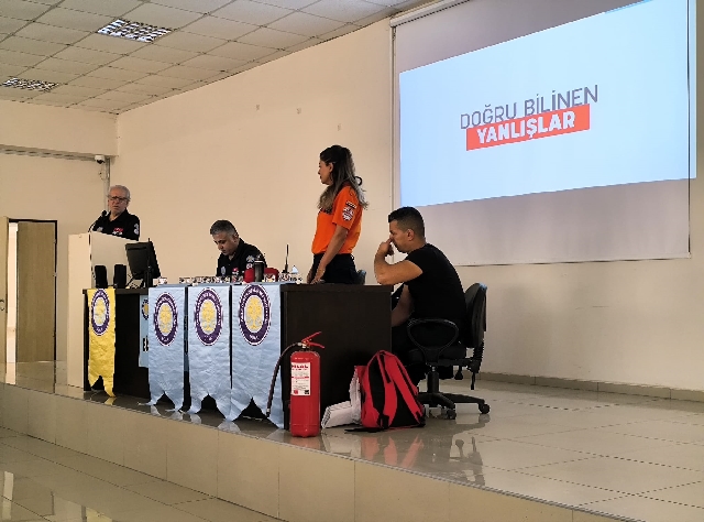 Toplumda afet bilincinin geliştirilmesi ve afetlere karşı dirençli bir nesil yetiştirilmesi amacıyla düzenlenen eğitimin önemine vurgu yapan DÜAK Ekip Sorumlusu Hacı Yılmaz, “Eğitimin asıl gayesi, teorik başarının ötesinde, afet anlarında bilinçli ve hazırlıklı bireyler olmanızı sağlamaktır” dedi.