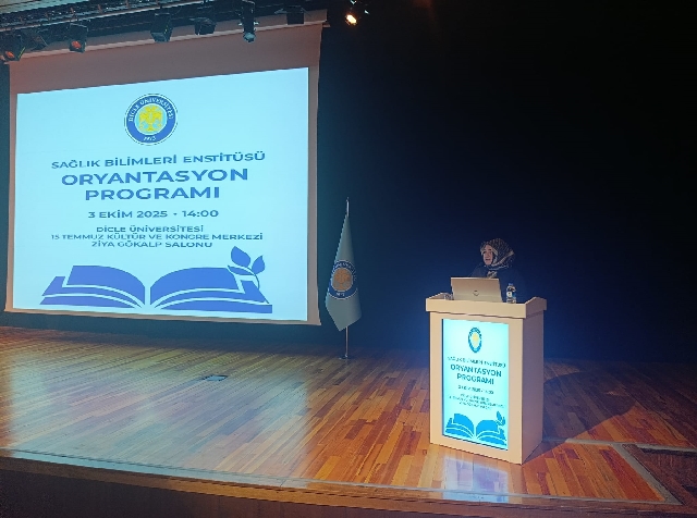 2025-2026 Eğitim Öğretim yılında Enstitümüze kayıt yaptıran öğrencilere yönelik olarak Oryantasyon Programı 3 Ekim 2025 tarihinde Dicle Üniversitesi 15 Temmuz Kültür ve Kongre Merkezi Ziya Gökalp Salonu’nda gerçekleştirildi. Program, Enstitü Müdürü Prof. Dr. Mahmut BALKAN’ın açılış konuşması ile başladı. Enstitü tanıtımı sonrasında Müdür Yardımcıları Dr. Öğr. Üyesi Esra ANUŞ TOPDEMİR ve Dr. Öğr. Üyesi Hacer Kayhan KAYA tarafından Yüksek Lisans Eğitim Süreci ve Doktora Eğitim Süreci konulu sunumlar yapıldı. Programda Öğrenci İşleri Daire Başkanı Mehmet Ali ESMER’in Öğrenci İşleri, Öğrenci Otomasyon Sistemi konulu sunumu, Erasmus Koordinatörlüğünden Fatma AYDIN’ın Öğrenci Değişim Programlarının Tanıtımı konulu, Kütüphane ve Dökümantasyon Daire Başkanlığı’ndan Songül ATLI’nın Üniversite Kütüphane Olanaklarının Tanıtımı ve Sağlık, Kültür ve Spor Daire Başkanlığından Sümeyye TURGAY ÖZBAY’ın Sosyal ve Kültürel Olanaklar konulu sunumları ile son buldu. Programda öğrencilerin merak ettikleri konulardaki soruları program sonunda soru, cevap bölümünde cevaplandı.