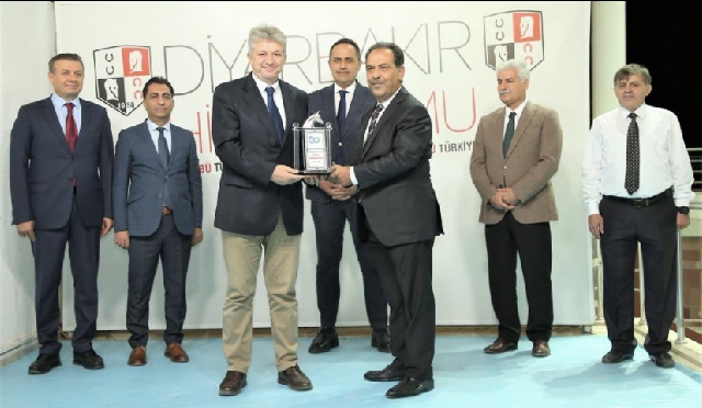 Dicle Üniversitesi Rektör Yardımcısı Prof. Dr. Ezeli Azarkan kazanan atın sahibi adına Cehdi Advan'a plaketini taktim etti.