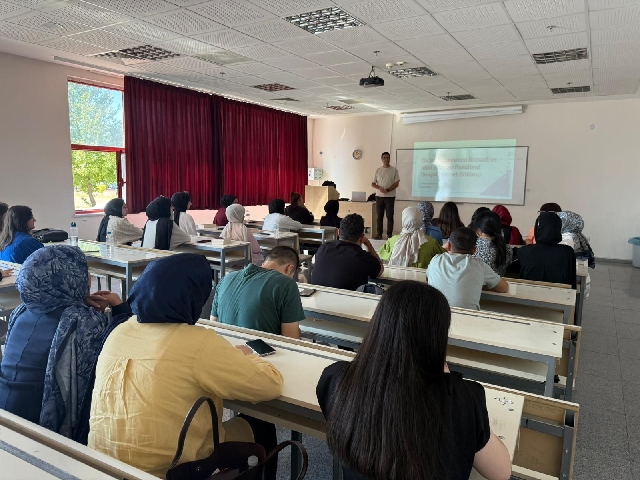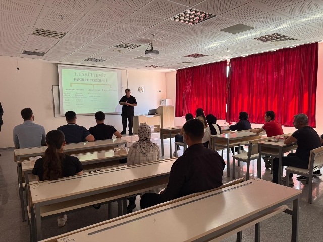 Daha sonra Dekan Yardımcımız Doç. Dr. Osman GEYİK öğrencilere üniversitemiz ve fakültemiz ile ilgili oryantasyon eğitimi gerçekleştirdi. Toplantı sonunda öğrencilerimize Dekanlığımız tarafından kitap hediye edildi.