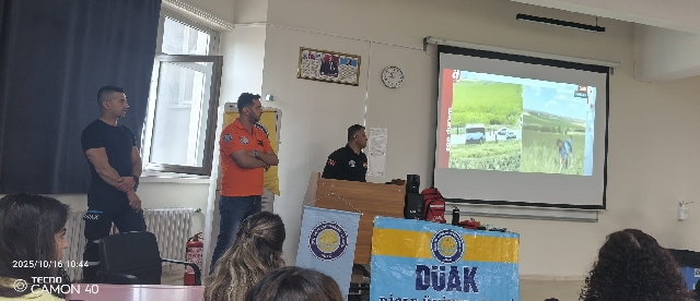 DÜAK Ekip Sorumlusu Hacı Yılmaz, öğrencilere seslenirken, "Bu eğitimin amacı, sadece sınavlarda başarılı olmanız değil, gerçek hayatta karşınıza çıkabilecek bir afette sizi ve sevdiklerinizi güvende tutabilmenizdir" dedi.