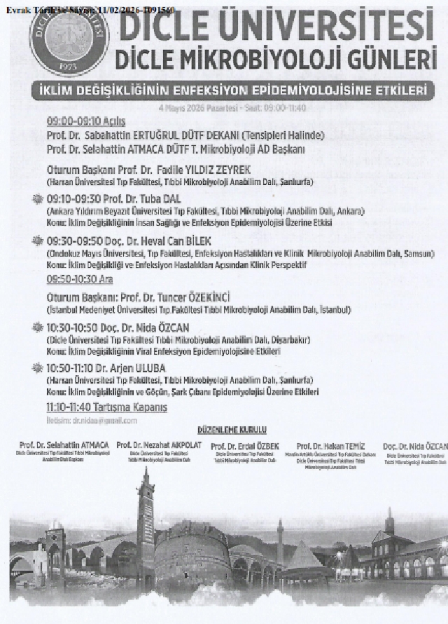 Dicle Üniversitesi Dicle Mikrobiyoloji Günleri Etkinlikleri  afişi ekte sunulmuştur.