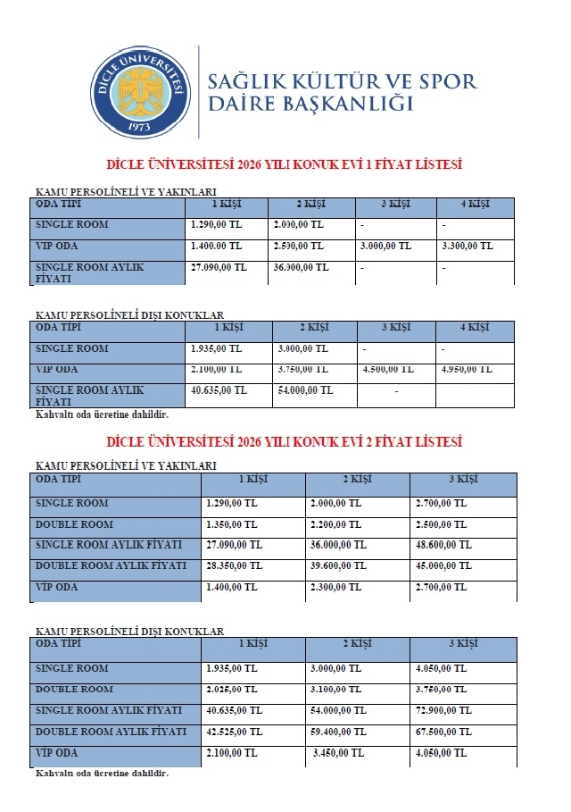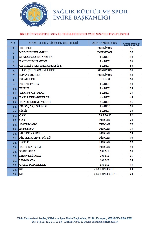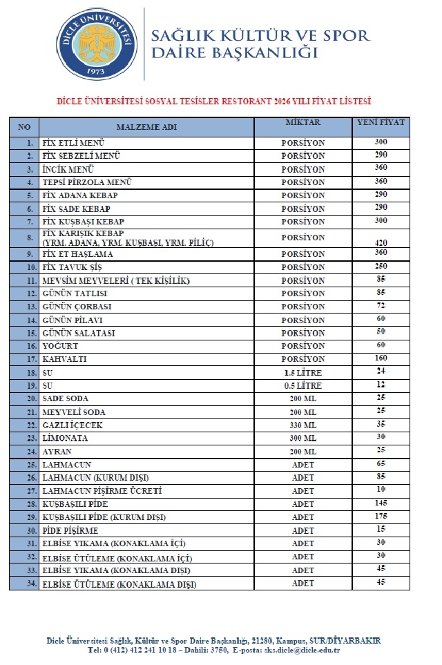 SOSYAL TESİSLER 2026 FİYAT LİSTESİ