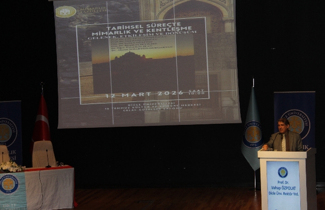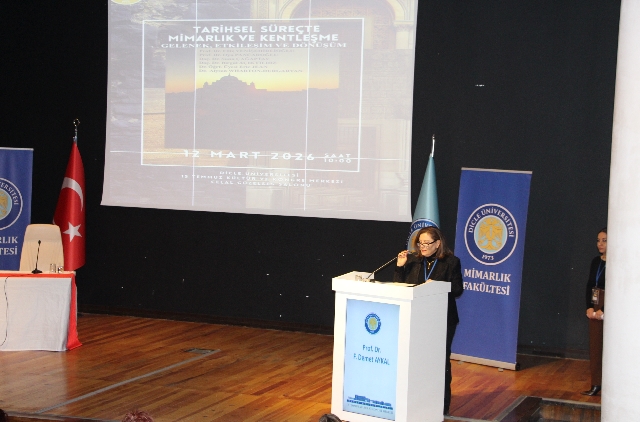 Dicle Üniversitesi Mimarlık Fakültesi tarafından düzenlenen “Tarihsel Süreçte Mimarlık ve Kentleşme: Gelenek, Etkileşim ve Dönüşüm” başlıklı panel, 12 Mart 2026 tarihinde Celal Güzelses Salonu’nda akademisyenler ve öğrencilerin katılımıyla gerçekleştirildi.