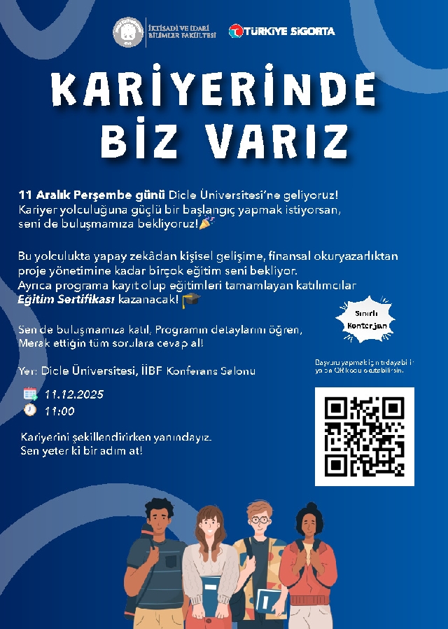 11 Aralık Perşembe günü Dicle Üniversitesi'ne geliyoruz! Kariyer yolculuğuna güçlü bir başlangıç yapmak istiyorsan, seni de buluşmamıza bekliyoruz!
