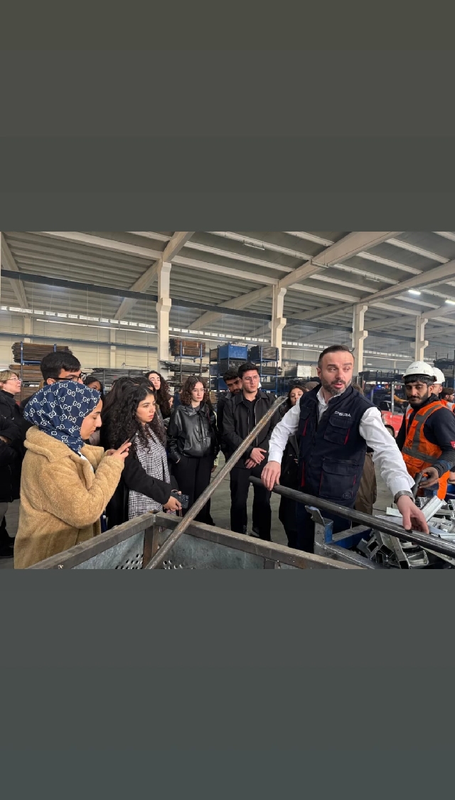 Gerçekleştirilen teknik geziye Mimarlık Fakültesi Dekanı Prof. Dr. F. Demet AYKAL, Dekan Yardımcısı Prof. Dr. D. Türkan KEJANLI ve Öğr. Gör. Aysel YILMAZ katıldı. Firma teknik personelleri tarafından öğrencilere kalıp ve iskele sistemlerinin üretim süreçleri, kullanım alanları, güvenlik standartları ve uygulamadaki teknik detaylara ilişkin kapsamlı bilgiler sunuldu. Öğrenciler, sektörde kullanılan güncel teknolojileri yerinde inceleme fırsatı bularak mesleki deneyimlerini geliştirme imkânı buldu.