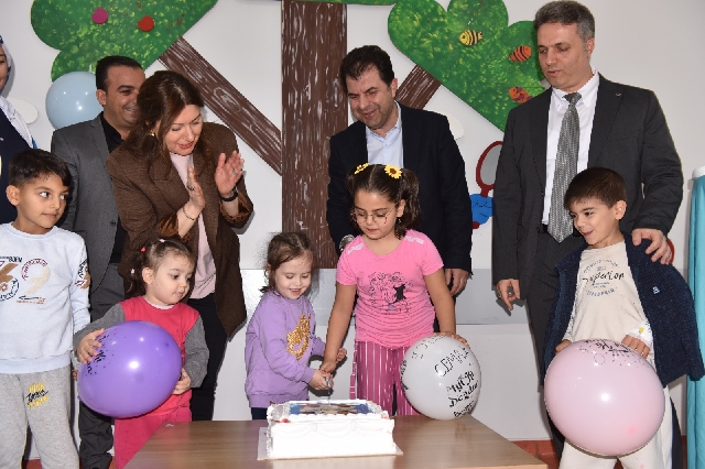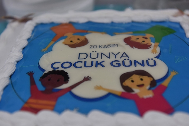 çalışanları, çocuklarla birlikte pasta keserek bu anlamlı günü onlarla