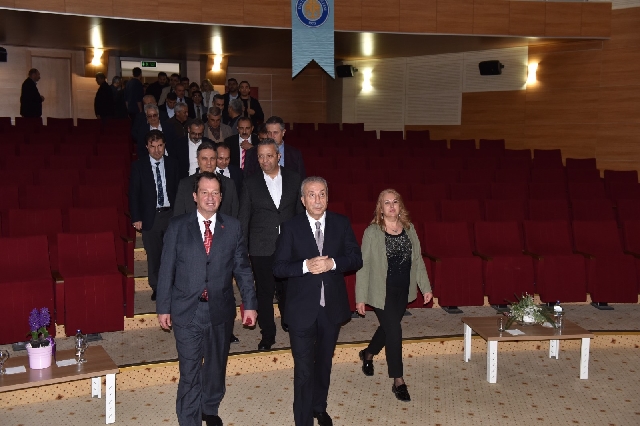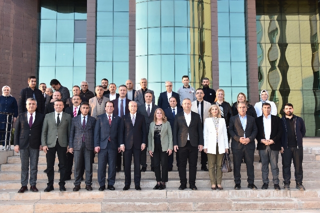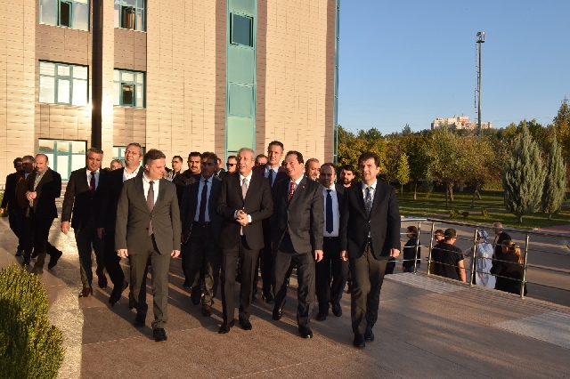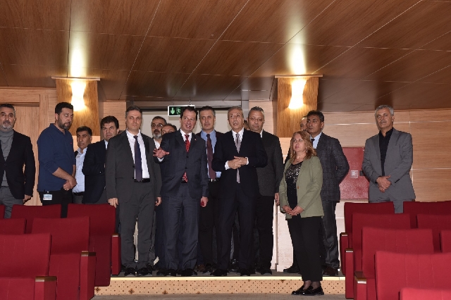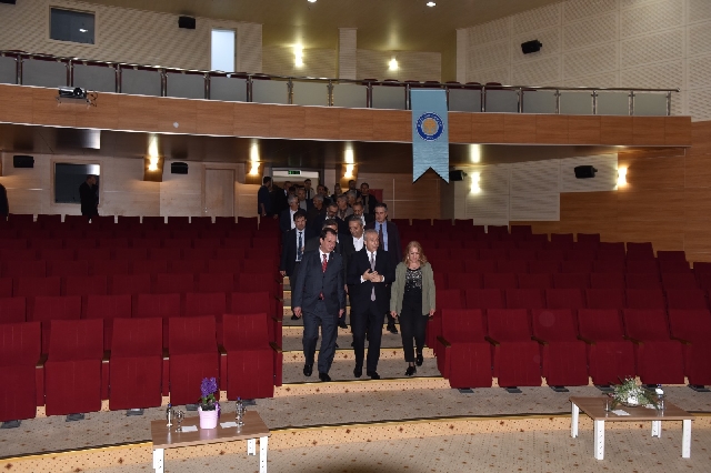 Misafirler, toplam 325 kişi kapasiteli Dr. Mehmet Mehdi Eker Konferans Salonu’nu gezerek incelemelerde bulundu.