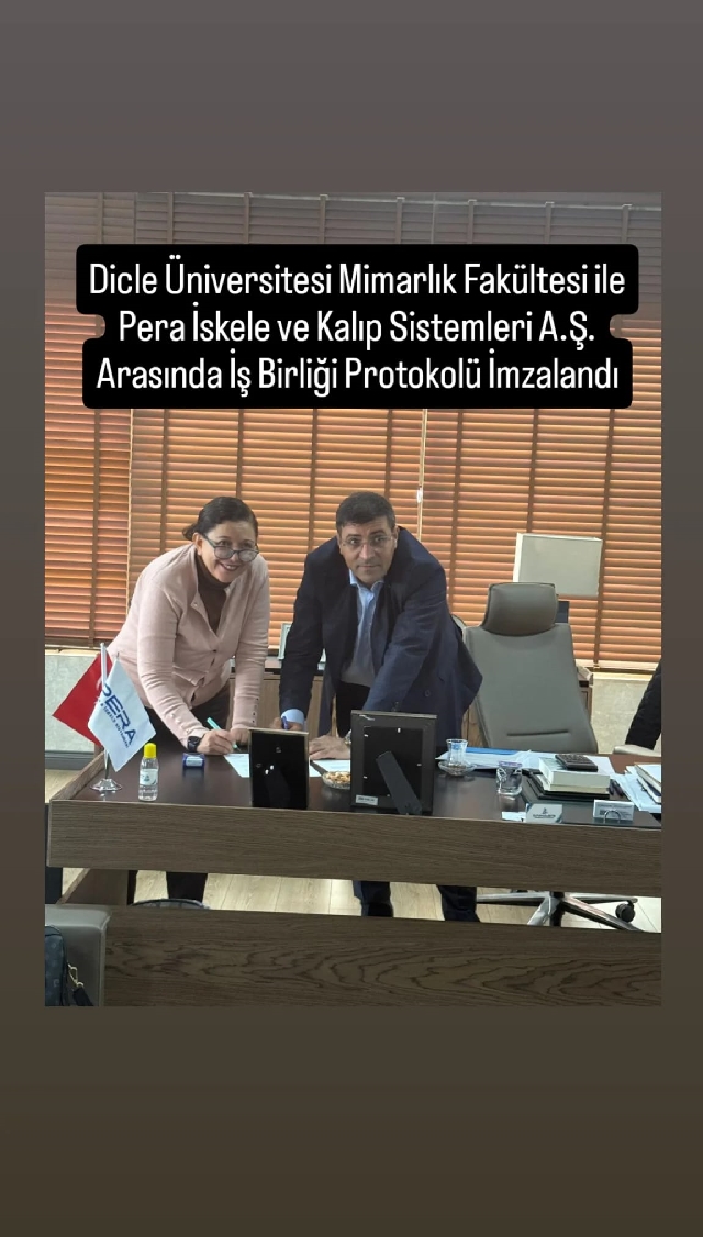 Dicle Üniversitesi Mimarlık Fakültesi ile Pera İskele ve Kalıp Sistemleri A.Ş. arasında ortak eğitim, araştırma ve uygulama alanlarında iş birliğini geliştirmeyi amaçlayan protokol, 10 Aralık 2025 tarihinde imzalandı.