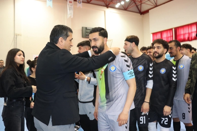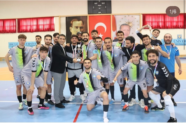 Üniversitemizin ev sahipliğinde 6-10 Nisan 2026 tarihleri arasında düzenlenen Üniversitelerarası Futsal Turnuvası, büyük bir heyecan ve yoğun katılımla başarıyla tamamlandı. Erkekler kategorisinde oynanan final karşılaşmalarının ardından Dicle Üniversitesi şampiyonluğa ulaşırken, Mardin Artuklu Üniversitesi ikinci, Muş Alparslan Üniversitesi ise üçüncü oldu. Turnuva boyunca sergilenen mücadele ve centilmenlik, organizasyona ayrı bir değer kattı.