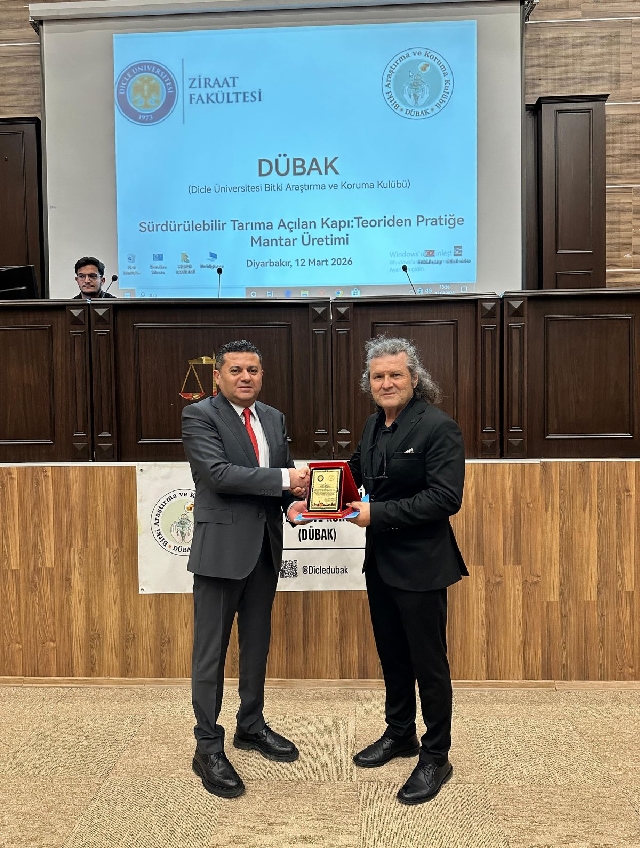 Dicle Üniversitesi Bitki Araştırma ve Koruma Kulübü (DÜBAK) tarafından “Sürdürülebilir Tarıma Açılan Kapı: Teoriden Pratiğe Mantar Üretimi” başlıklı seminer gerçekleştirildi. Programa akademisyenler, sektör temsilcileri, kamu kurumlarında görev yapan mühendisler ve öğrenciler katıldı.