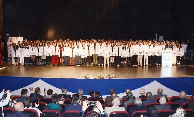 davetliler önünde beyaz önlüklerini giyerek meslek hayatlarına anlamlı bir