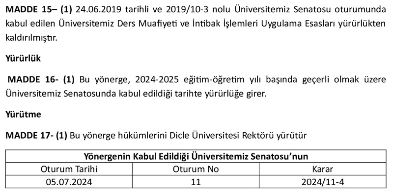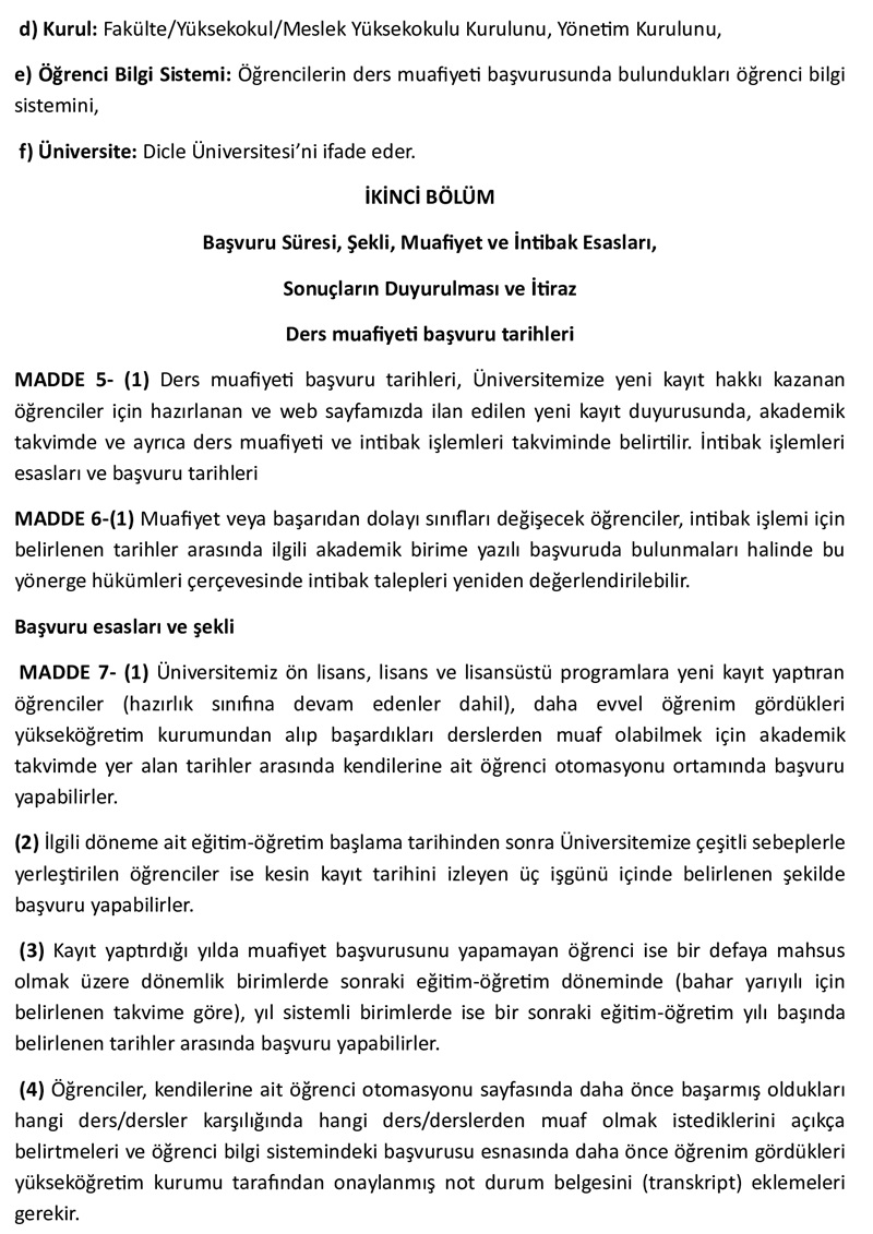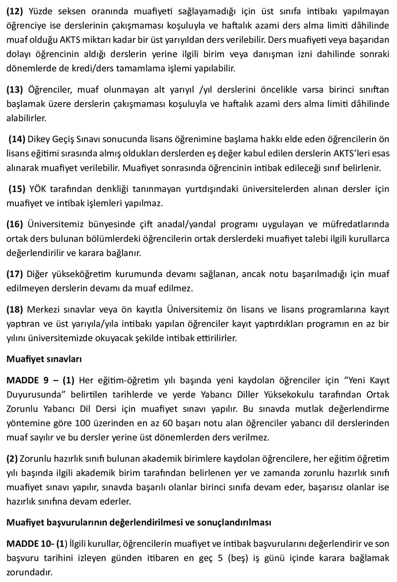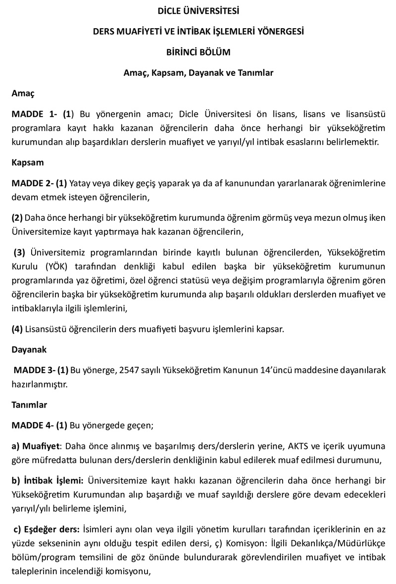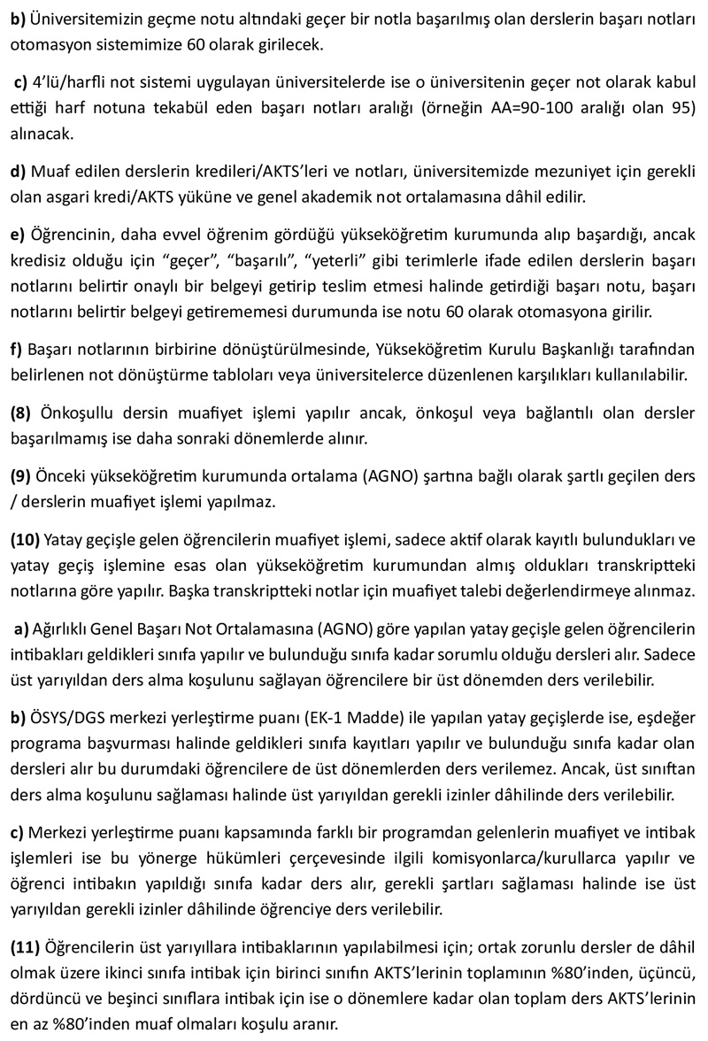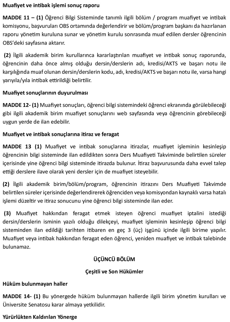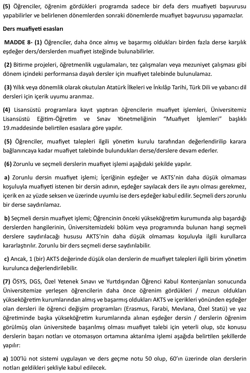 Ders Muafiyeti ve İntibak İşlemleri Uygulama Esasları (Yeni)
