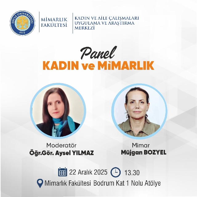 Kadın ve Aile Çalışmaları Uygulama ve Araştırma Merkezimiz Dicle Üniversitesi Mimarlık Fakültesi ile birlikte "Kadın ve Mimarlık" isimli bir panel düzenlendi.