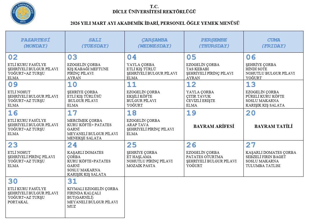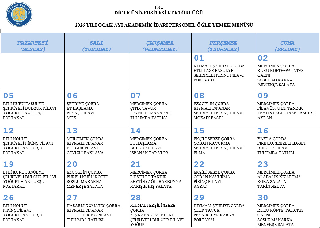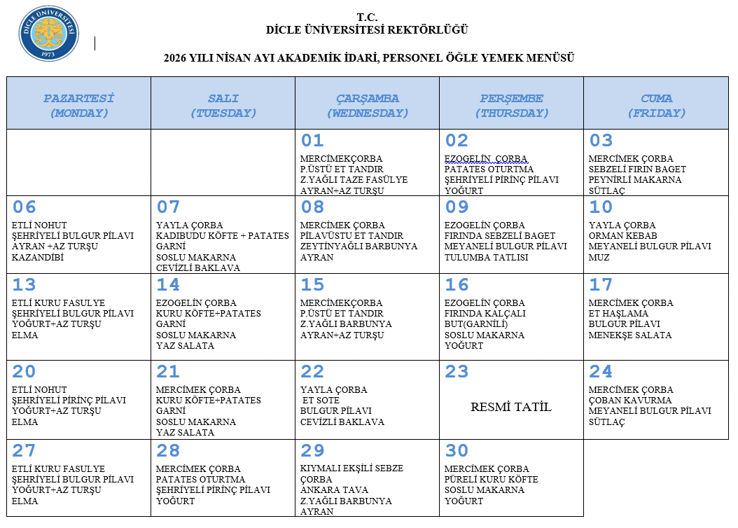 Personel Yemek Listesi