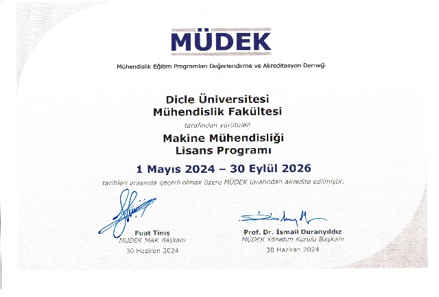Akredite olan lisans programlarımız başarılı bir şekilde tamamlayan mezunlarımızın diplomaları MÜDEK tarafından üye olunan