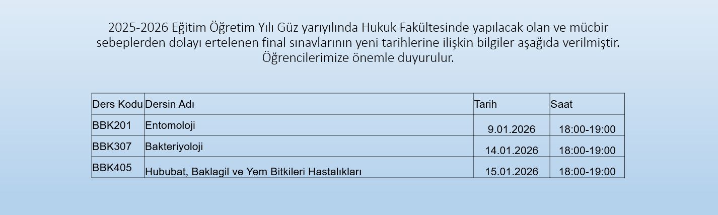 • 2025-2026 Eğitim-Öğretim Yılı Güz Dönemi Final ve Bütünleme Sınav Programı Yayınlandı