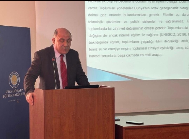 Etkinliğe, Ziya Gökalp Eğitim Fakültesi Dekanı Prof. Dr. Şengül Kocaman, Dekan Yardımcılarımız Doç. Dr. Özkan Ciğa, Doç. Dr. Mehmet Serkan Şahin ve akademisyenler ve öğrenciler katılım sağladı. Prof. Dr. Selahattin Gönen, eğitim kurumlarının sürdürülebilir kalkınma süreçlerindeki önemini, stratejik katkılarını ve gelecek perspektiflerini katılımcılarla paylaştı.