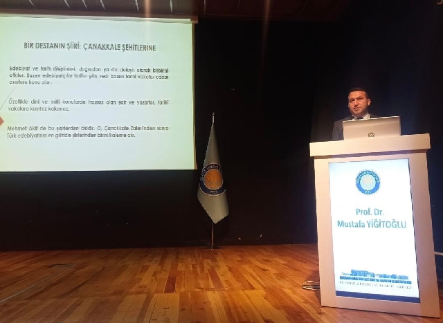 Prof. Dr. Mustafa Yiğitoğlu ise "Bir Destanın Şiiri: Çanakkale Şehitlerine" başlıklı konuşmasında Mehmet Âkif Ersoy’un “Çanakkale Şehitlerine” şiirinden beyitlerle dönemin ruhunu ve zorluklarını aktardı.
