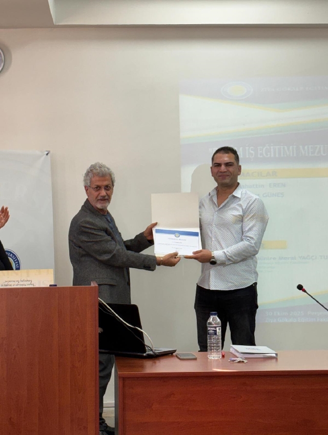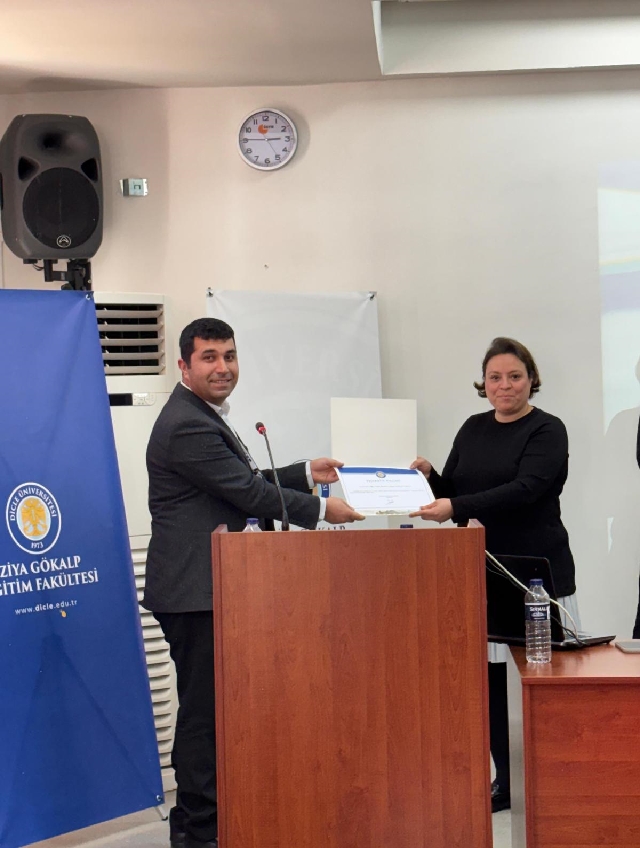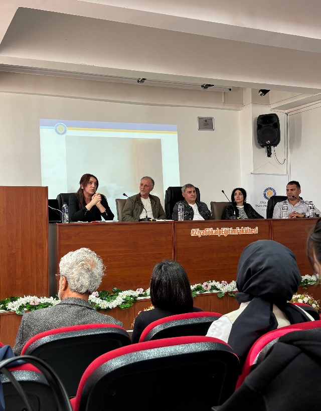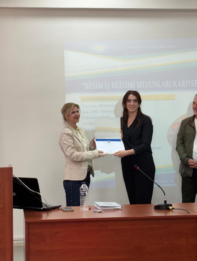 30 Ekim 2025 saat 13:00-15:00 saatleri arasında Ziya Gökalp Eğitim Fakültesi Konferans Salonda Resim İş Eğitimi Anabilim Dalı tarafından "Resim İş Eğitimi Mezunları Kariyer Basamakları" başlıklı bir söyleşi düzenlendi. Moderatörlüğünü Dr.Ögr.Üyesi Münire Meral YAĞÇI TURAN'IN yaptığı söyleşide Resim İş Eğitimi Anabilim Dalının ilk mezunlarindan olan ve Resim İş Eğitimi Anabilim Dalında görev yapan Ögr.Gör. Bahattin EREN, Arş.Gör Demet GÜNEŞ, Sanatçı-Galerici Rıdvan Kuday, Sanatçı-Ögretmen Berhiv EKİN, Sanatçı-Ögretmen Kasım ATLI sanata ve sanat eğitimine olan ilginin nasıl başladığına, okudukları bölümü seçerken yaşadıkları olumlu ve olumsuz süreçlere , bölümü okudukları süreçteki tecrübelerine,mezun olduktan sonra alanları ile ilgili yönelimlerine ve tecrübelerine, kariyerleri ile ilgili koydukları hedeflere, hedeflerine doğru yürürken kullandıkları yöntemlere degindiler. Resim İş Öğretmenliği lisans programında öğrenim gören öğrenciler,mezunlara mesleki gelisimleri ve kariyer süreçleri hakkında sorular yönelttiler. Söyleşi sonunda katılımcılara teşekkür belgesi takdimi yapıldı .