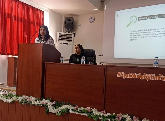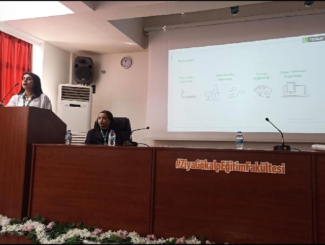 Ziya Gökalp Eğitim Fakültesi Konferans Salonu’nda 5 Kasım 2025 tarihinde “Bağımlılık Sürecinde Kurumların Desteği” konulu bir seminer düzenlendi. Bağımlılıklarla mücadele kapsamında gerçekleştirilen seminerde, Diyarbakır Rehabilitasyon Merkezi'nde görev yapan Sosyal Hizmet Uzmanı Elif Cemre İzgi, bağımlılıklar hakkında genel bilgiler vererek Yeşilay Danışmanlık Merkezleri hakkında katılımcıları bilgilendirdi.