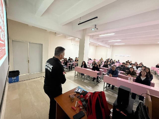 DÜAK Ekip Sorumlusu Hacı Yılmaz, öğrencilere seslenirken, "Bu eğitimin amacı, sadece sınavlarda başarılı olmanız değil, gerçek hayatta karşınıza çıkabilecek bir afette sizi ve sevdiklerinizi güvende tutabilmenizdir" dedi.