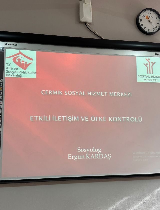 Çermik Aile ve Sosyal Hizmetler Müdürlüğü tarafından 26.11.2025 tarihinde Çarşamba günü Sosyolog Ergün KARATAŞ tarafından Yüksekokulumuz öğrencilerine yönelik ‘’Aile İçi İletişim – Evlilik Öncesi ile ilgili seminer verilmiştir.