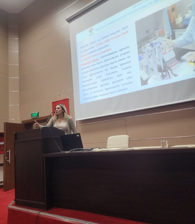 Dicle Üniversitesi Proje Koordinasyon Uygulama ve Araştırma Merkezi ve Kariyer Planlama Araştırma ve Uygulama Merkezi bünyesinde 23 Ekim 2025 tarihinde TÜBİTAK 2209 Üniversite Öğrencileri Proje Hazırlama ve Yazma Eğitimi gerçekleştirildi. Proje Yazma Eğitimi Proje Koordinasyon Uygulama ve Araştırma Merkezi Müdürü Prof. Dr. Remziye GÜZEL tarafından verildi. Güzel, projelerin teorik bilgilerin uygulamaya dönüştürülmesine yardımcı olma, eleştirel düşünmeyi teşvik etme, disiplinler arası bakış açısı geliştirme ve problem çözme becerilerini kazandırma gibi önemli beceriler kazandırırken, iş dünyasının beklentilerine uygun becerilere sahip olma imkânını da sağladığını ifade etti. Teknolojik dönüşümün kritik bir rol oynadığı günümüz dünyasında geleceğin mesleklerinin; 3-D Yazılım Mühendisliği, Kripto Dedektifi, Nano-medikalci, Organ İmalatçısı/Tasarımcısı, Robot Tamirciliği, Salgın Hastalık Güvenlikçisi, Siber Polis, Yapay Zeka Uzmanı, Zaman Planlamacısı, Bireysel Mikrobiyom Yöneticisi, Biyoloji ve Gen Uzmanları, Dikey Çiftçi, Dron Teknisyeni, Duygu Tasarımcısı, Hafıza Onarım, Hafıza Arttırma Uzmanı, İklim Analisti ve Hava Moderatörü, İnsan-Makine Hibrit Ortam Tasarımcısı-Yöneticisi olduğuna vurgu yapan Güzel, bu mesleklere yönelik kazanımların üretken, girişimci ve buluş odaklı bir proje sürecine dahil olmaktan geçtiğini ifade gitti. Öğrencilerin TÜBİTAK 2209 projelerinin bitirme tezi olarak kabul edilebileceğine dikkat çekildi.