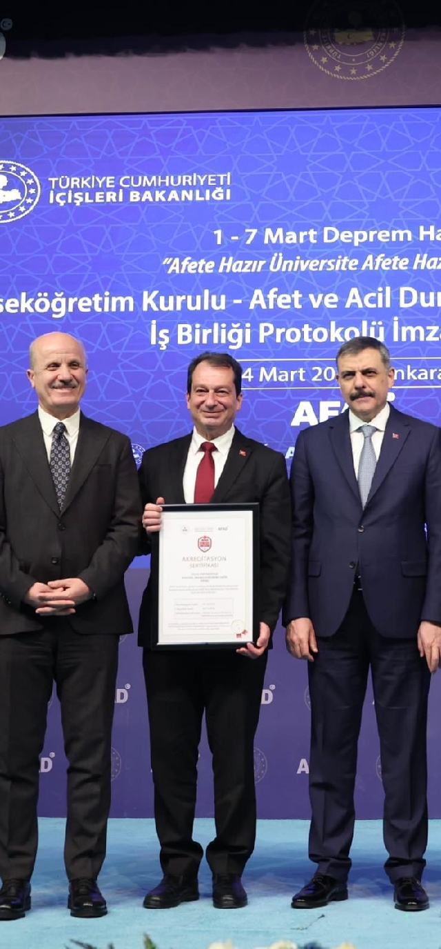 Akreditasyon belgesi, İçişleri Bakanı Mustafa Çiftçi ve YÖK Başkanı Prof. Dr. Erol Özvar tarafından Rektörümüz Prof. Dr. Kamuran Eronat’a takdim edildi.